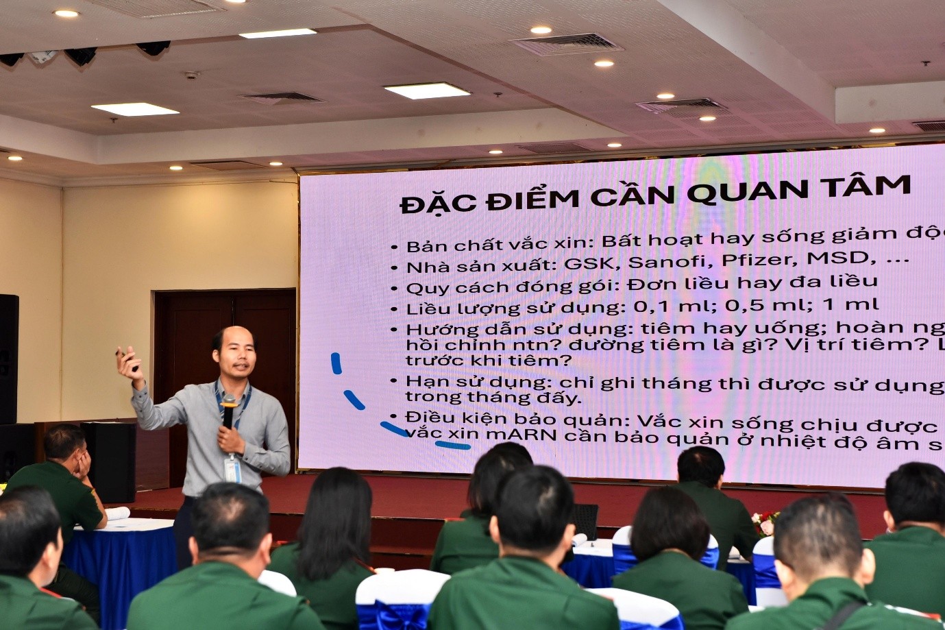 Tuy nhiên, tại một số đơn vị tuyến chiến thuật, nhân lực, cơ sở vật chất và kỹ năng xử trí tai biến sau tiêm vẫn còn hạn chế. Vì vậy, đợt tập huấn lần này có ý nghĩa quan trọng, giúp củng cố, nâng cao năng lực chuyên môn cho cán bộ, nhân viên quân y, đáp ứng yêu cầu thực tiễn công tác tiêm chủng trong Quân đội. Để buổi tập huấn thành công, Đại tá Lê Văn Đông đề nghị các học viên nghiêm túc học tập, chấp hành kỷ luật quân đội, chủ động tiếp thu kiến thức, kỹ năng chuyên môn để vận dụng vào thực tế.