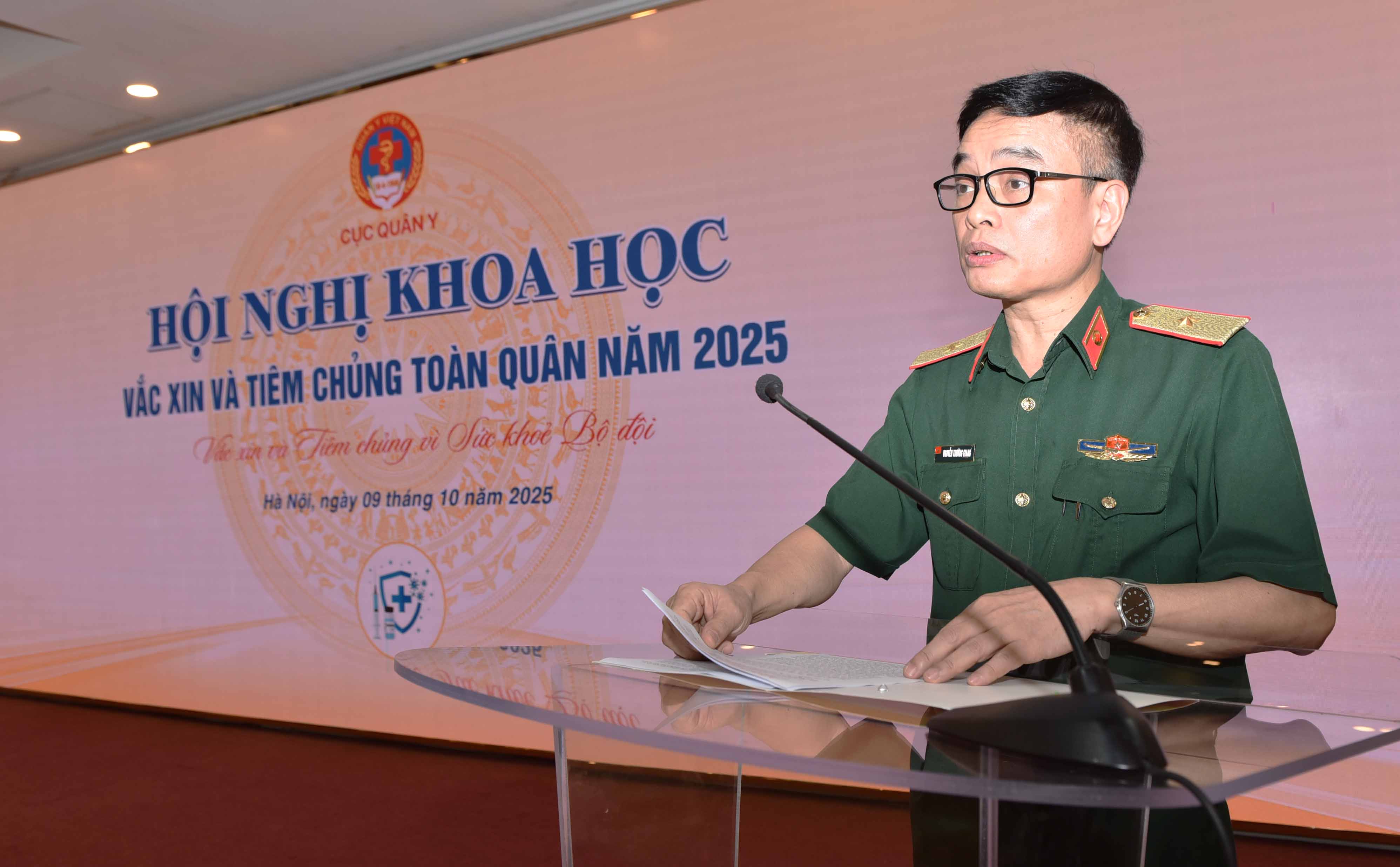 Phát biểu khai mạc hội nghị, Thiếu tướng PGS.TS. Nguyễn Trường Giang, Cục trưởng Cục Quân y cho biết: vắc xin là một trong những phát minh vĩ đại nhất của nhân loại. Nhờ có vắc xin và việc sử dụng vắc xin đã giúp cho nhân loại phòng ngừa được hầu hết các bệnh nhiễm trùng nguy hiểm, thậm trí thanh toán được một số bệnh tối nguy hiểm như đậu mùa, bại liệt. Gần đây, vắc xin đã góp phần quan trọng giúp nhân loại vượt qua đại dịch COVID-19. Việc Sử dụng vắc xin không chỉ giúp bảo vệ cơ thể khỏi các bệnh truyền nhiễm nguy hiểm, mà còn giảm thiểu các biến chứng, di chứng của bệnh, tạo miễn dịch cộng đồng, giảm gánh nặng kinh tế y tế; góp phần bảo đảm an ninh y tế cho quốc gia và trở thành sản phẩm thiết yếu sử dụng trong phòng bệnh trên phạm vi toàn cầu. Thời gian vừa qua, Quân y các cấp trong toàn quân đã tổ chức thực hiện tốt công tác tiêm chủng vắc xin phòng bệnh, với các nhiệm vụ tiêm chủng thường xuyên (tiêm vắc xin AT phòng uốn ván cho chiến sĩ mới, học viên mới); tiêm chủng theo yêu cầu nhiệm vụ (tiêm vắc xin sốt vàng cho các lực lượng đi làm nhiệm vụ Gìn giữ hòa bình Liên Hợp quốc và đi công tác ở các quốc gia châu Phi...); tiêm chủng chống dịch như tiêm vắc xin phòng, chống COVID-19… Với ý nghĩa và tầm quan trọng của vắc xin, được sự đồng ý của Thủ trưởng Bộ Quốc phòng, Thủ trưởng Tổng cục Hậu cần - Kỹ thuật, Cục Quân y phối hợp với các cơ quan, đơn vị liên quan tổ chức Hội nghị khoa học về vắc xin và tiêm chủng toàn quân năm 2025, với chủ đề “Vắc xin và tiêm chủng vì sức khỏe bộ đội”.